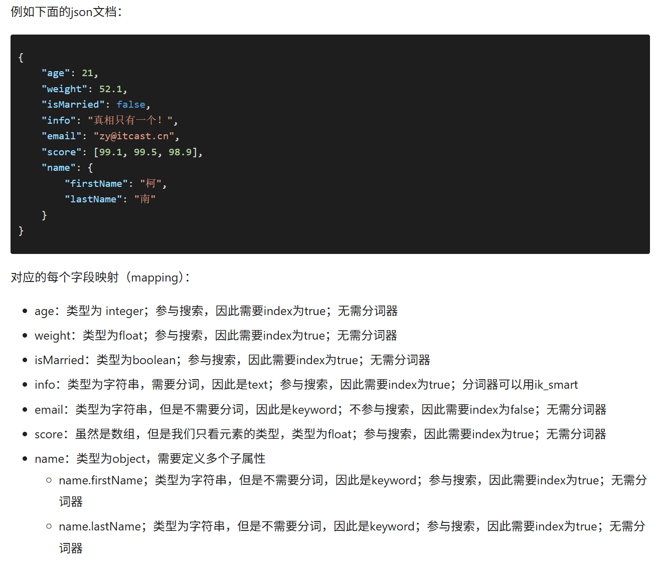 mapping是对索引库中文档的约束,常见的mapping属性包括: