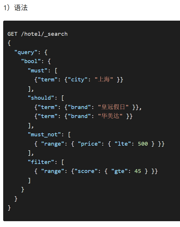 复合(compound)查询:复合查询可以将上述各种查询条件组合起来,合并查询条件。例如: