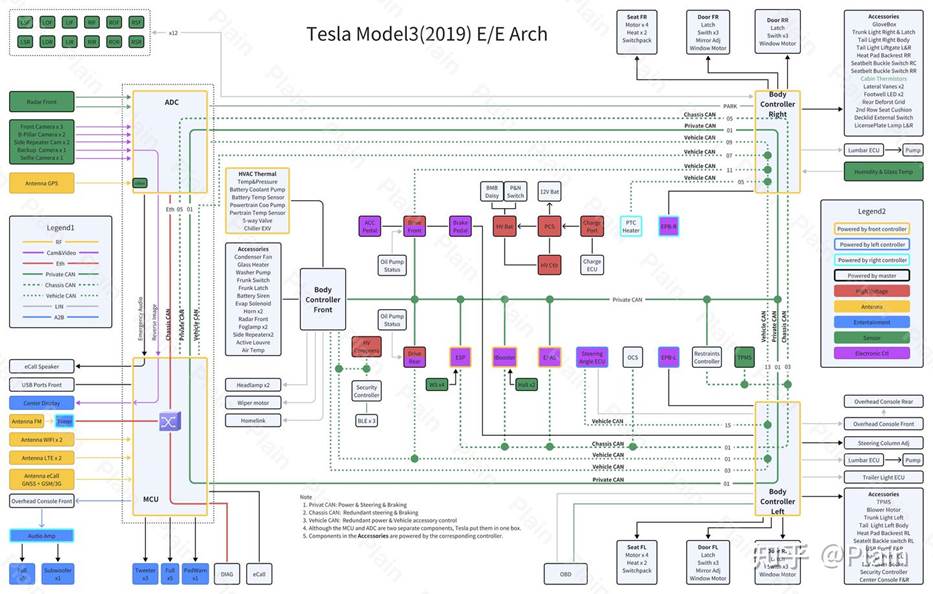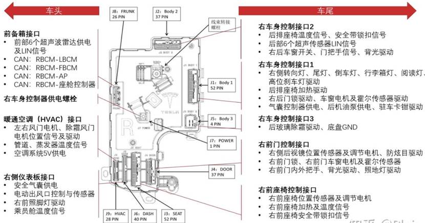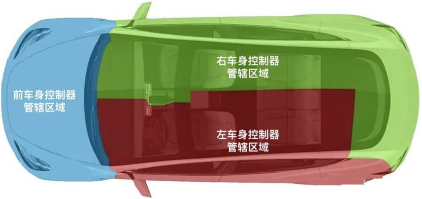 图19 特斯拉汽车“前-左-右”域控电子电气架构图