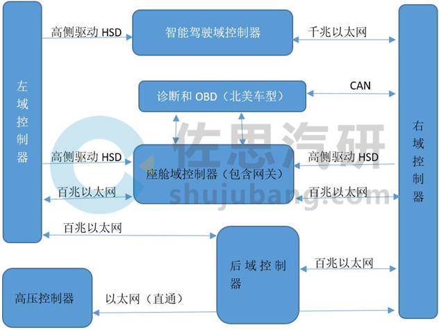 严格意义上的域控制器的通信应该是以太网形成的“点对点”通信,为“数据定义”汽车打下基础。