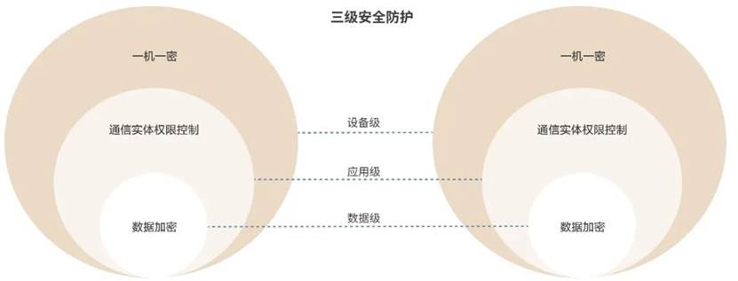 b、应用级:通过对通信实体应用进行权限控制,只有经过签名的可信应用之间才能建立通信,有效防止非可信应用干扰或窃取通信数据,保障通信过程的安全性与可靠性。