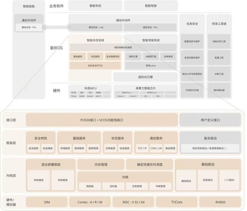 AOS为华为自研的实时操作系统,兼容Linux接口,具有确定性调度,低延迟,功能安全和Security特性,并且兼容Linux驱动框架和三方库。
