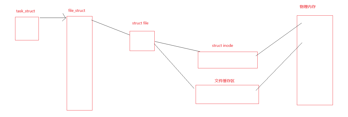 - 当进程要访问一个文件时,操作系统先通过文件系统的 inode 找到磁盘上的物理块地址,再通过I/O操作将数据从磁盘的物理地址加载到物理内存,最后通过虚拟地址供进程使用。