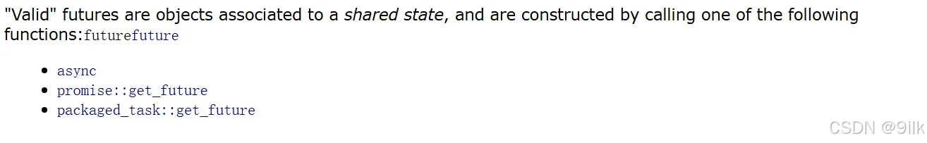 - std::launch::deferred表明该函数会被延迟调用 , 直到在- futurre上调用- get()或者- wait()才会开始执行任务