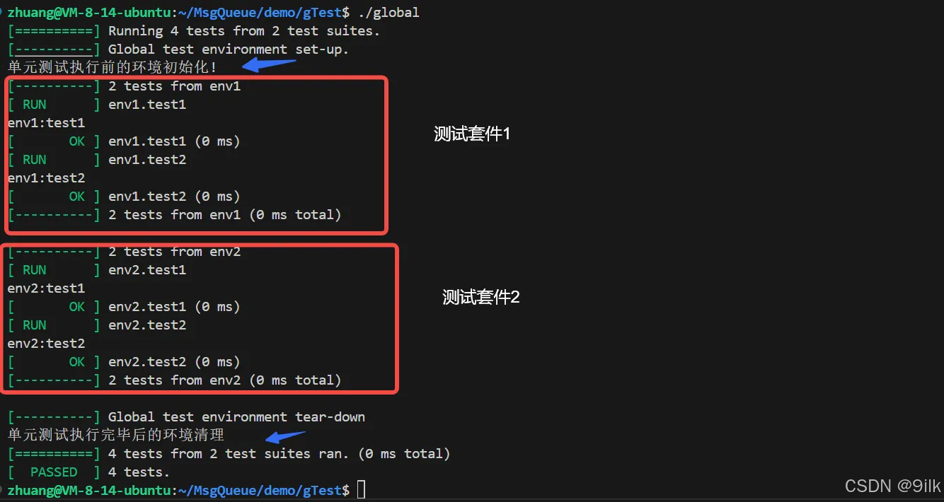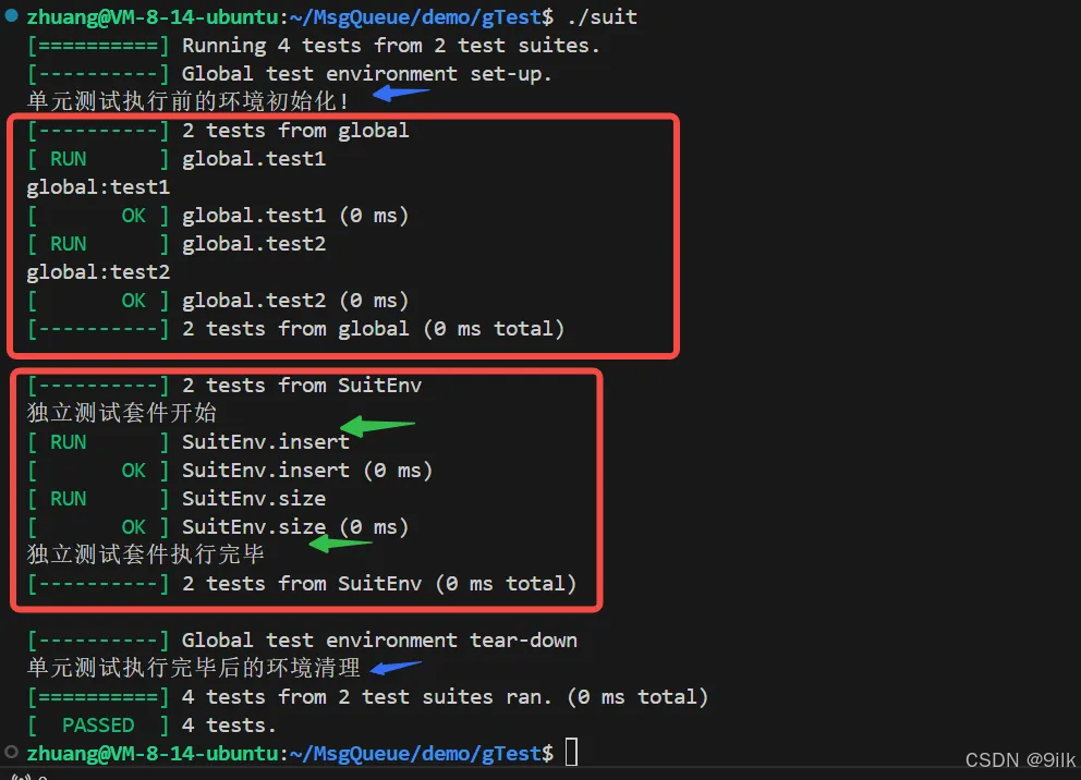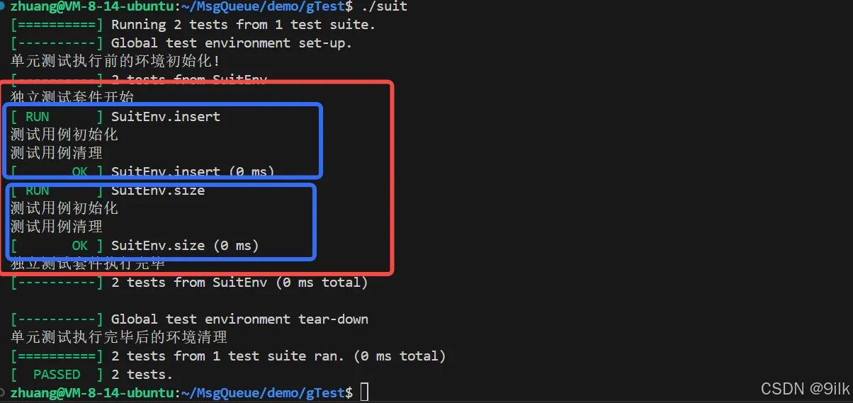 - 每个 TEST_F在执行前都会重新构造一个新的SuitEnv对象,这样其内部的成员是每个测试用例的各私有一份了,互不影响。