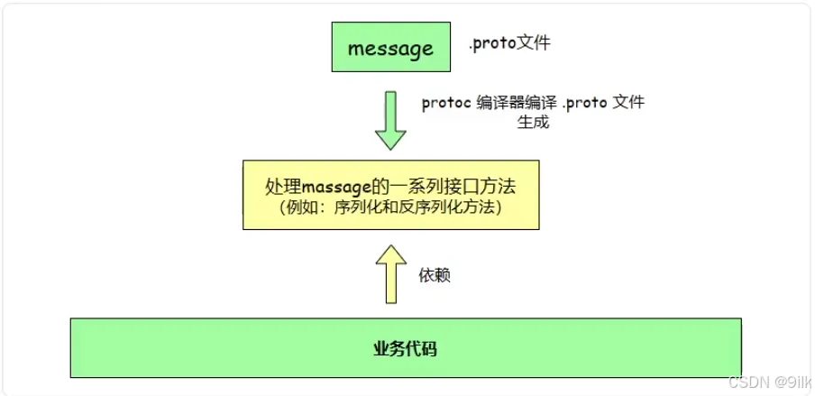 - 依赖生成的接口,将编译生成的头文件包含进我们的代码中,实现对.proto文件中定义的字段进行设置和获取,和对message对象进行序列化和反序列化。