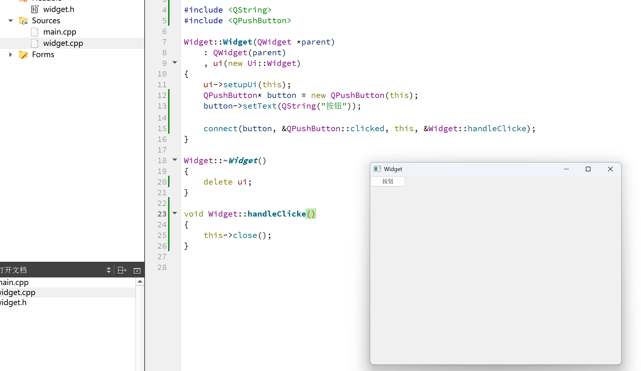 - 信号和槽机制底层是通过函数间的相互调⽤实现的。每个信号都可以⽤函数来表⽰,称为信号函数;每个槽也可以⽤函数表⽰,称为槽函数。例如: "按钮被按下" 这个信号可以⽤ clicked() 函数表⽰,"窗⼝关闭" 这个槽可以⽤ close() 函数表⽰,假如使⽤信号和槽机制-实现:"点击按钮会关闭窗⼝" 的功能,其实就是 clicked() 函数调⽤ close() 函数的效果。