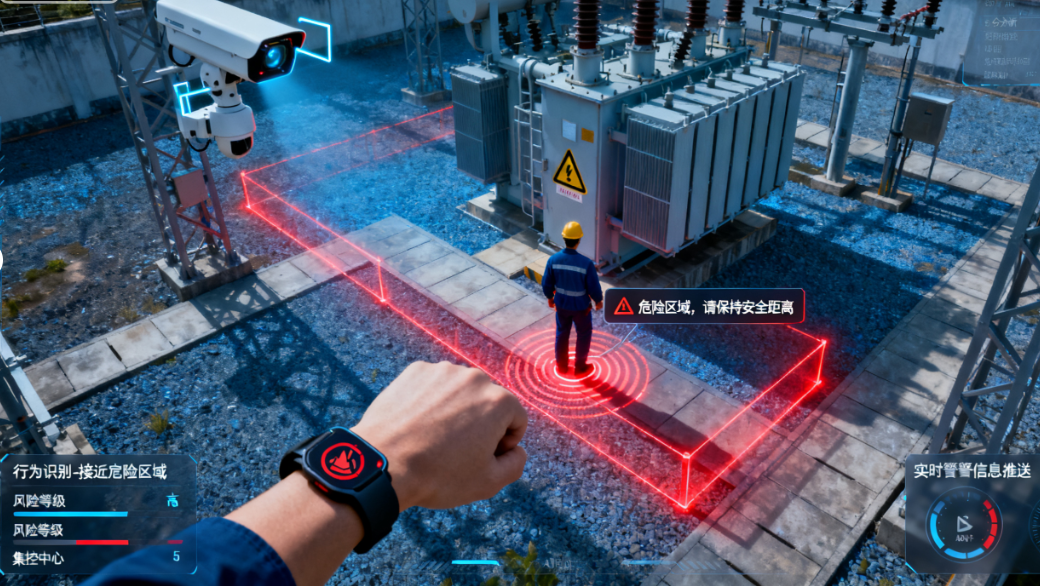 在重庆大坪变电站,当作业人员靠近危险区域时,手环会震动并发出语音警示;若有人违规脱卸安全帽或工作服,云台摄像机会自动抓拍并触发实时告警。