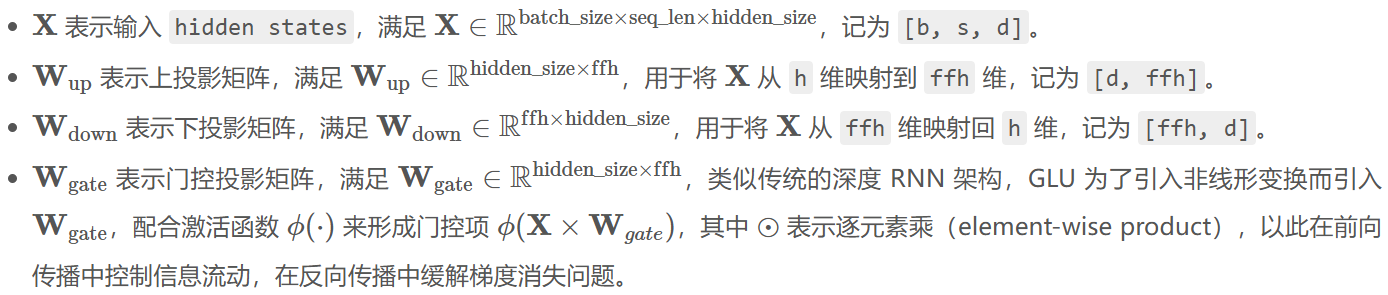 Dense 的 MLP 模块 :先将 hidden_states 从 h 维上投影(up-project)到更高的 ffh 维,