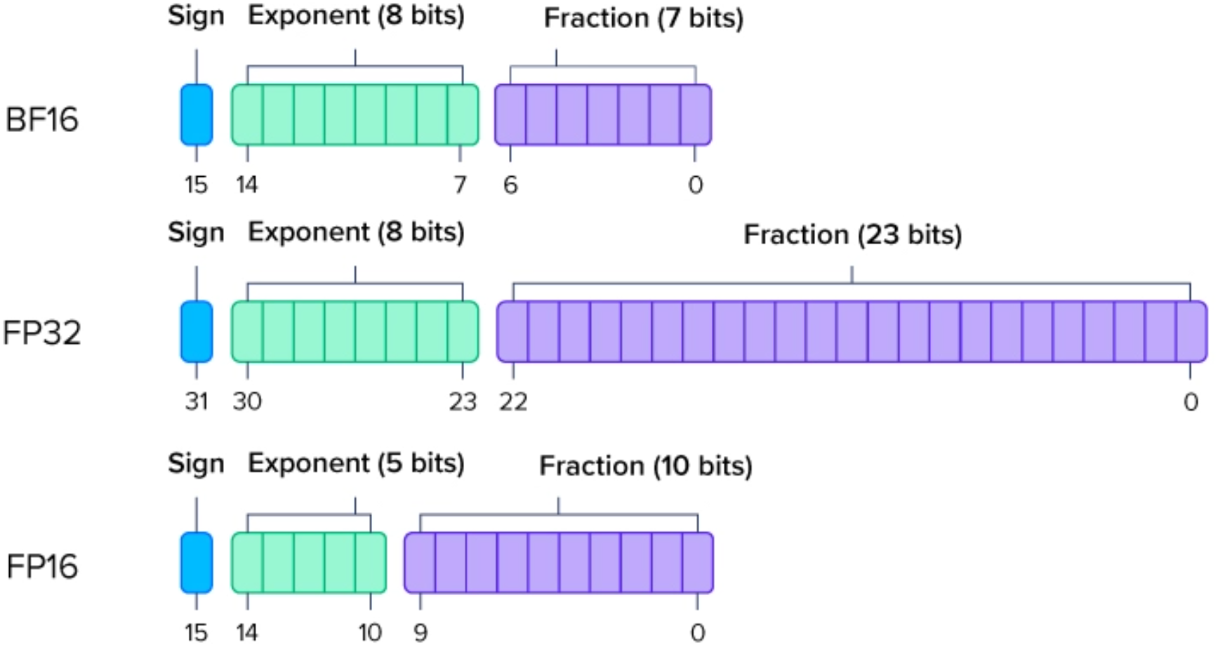 浮点数 -- 双精度: FP64 单精度: FP32 半精度: FP16