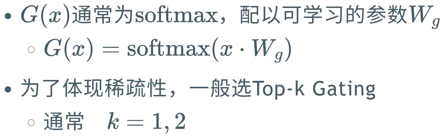 每次只用一部分专家的参数;条件计算与动态资源分配