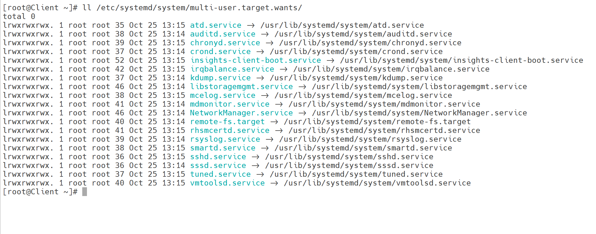 [root@Client ~]# ll /etc/systemd/system/multi-user.target.wants/