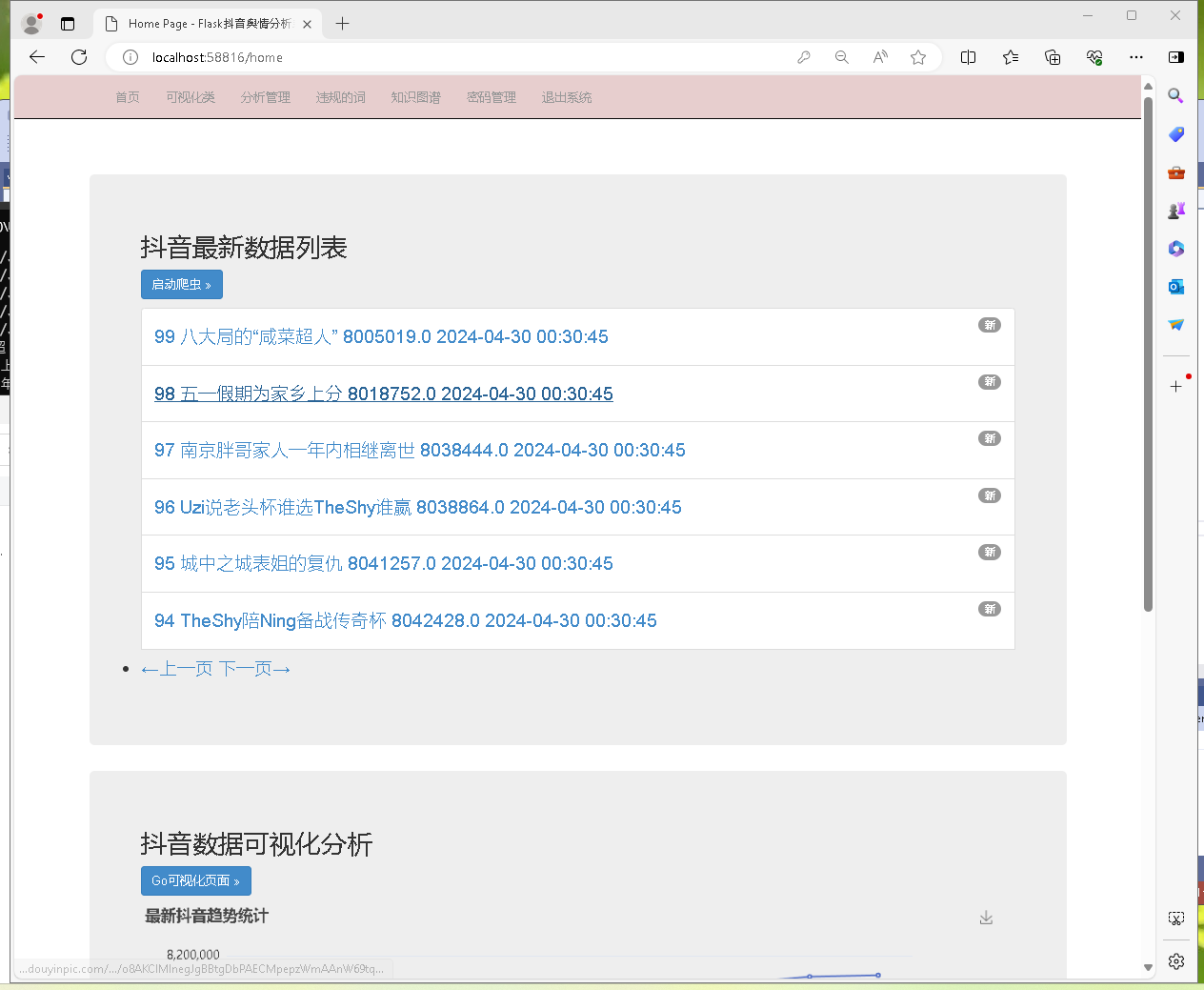 web网页,在线%抖音,舆情%分析系统demo,基于python+web+echart+nlp+知识图谱,数据库mysql