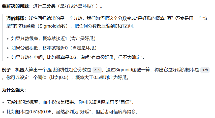 核心思想:用对数几率函数(Sigmoid)将线性输出映射到 (0,1)(0,1):