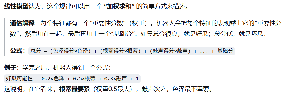 形式简单、可解释性强(权重 wi表示属性重要性)