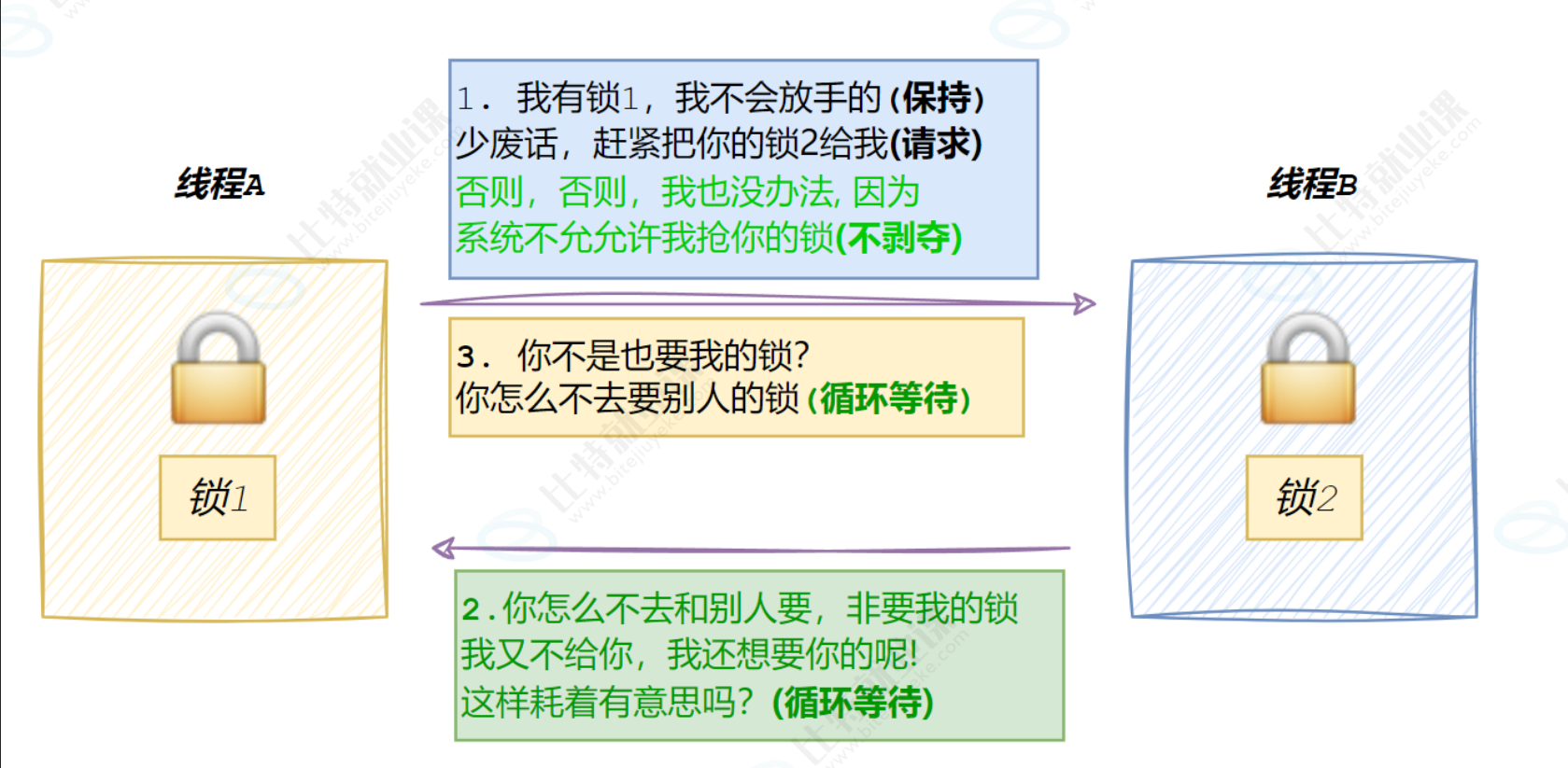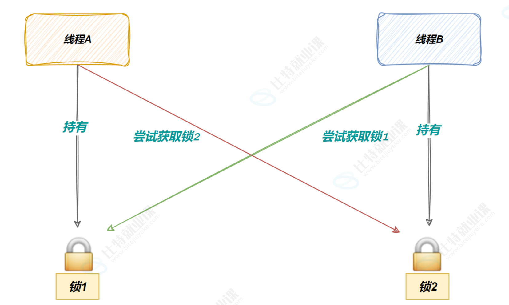 B正确 死锁的产生就是因为程序因为获取资源而不可得的情况下程序卡死的情况