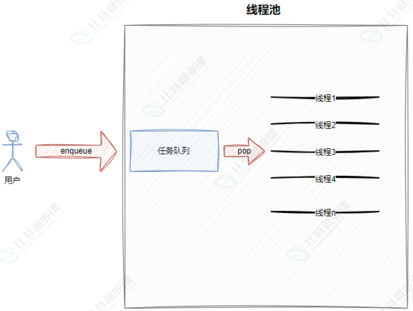 线程池通过一个线程安全的阻塞任务队列加上一个或一个以上的线程实现,线程池中的线程可以从阻塞队列中获取任务进行任务处理,当线程都处于繁忙状态时可以将任务加入阻塞队列中,等到其它的线程空闲后进行处理。