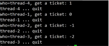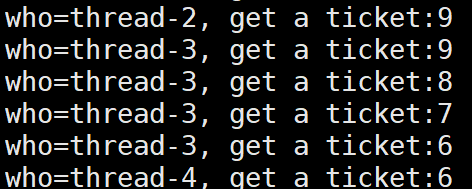 void* getTicket(void* args) {threadData* td = static_cast<threadData*>(args);const char* name = td->threadname.c_str();while (true) {if (tickets > 0) {printf("who=%s, get a ticket:%d\n", name, tickets);tickets--;}elsebreak;// sleep(1);}printf("%s ... quit\n", name);return nullptr;