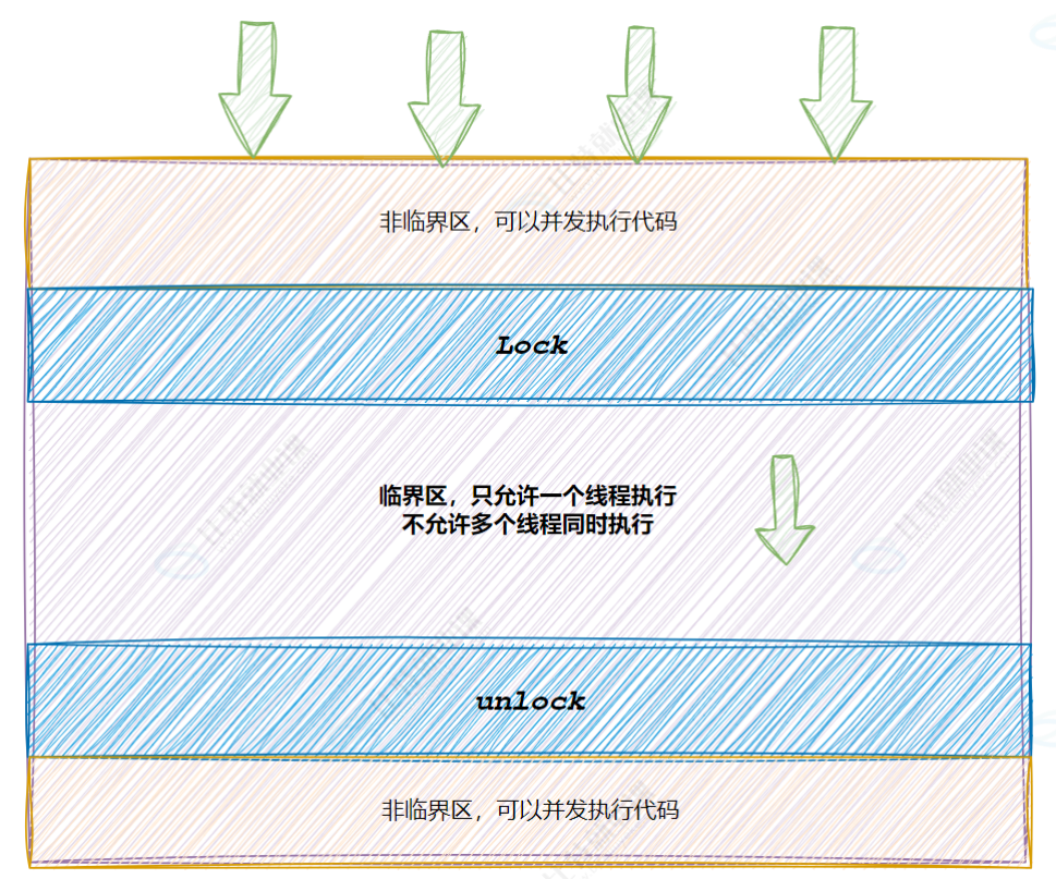 - 临界区:每个线程内部,访问临界资源的代码,就叫做临界区