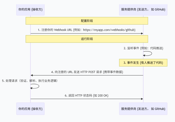 1. **发送方 (Sender)**:提供 Webhook 服务的应用(如 GitHub、Stripe)。