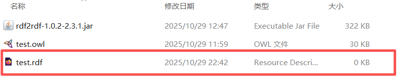 把下载的df2rdf-1.0.2-2.3.1.jar放到.owl文件同一个目录下,后续命令直接用相对路径。