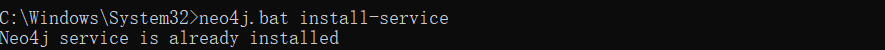 安装成功会显示“Neo4j service installed”,我这个之前安装过了,显示“Neo4j service is already installed”。