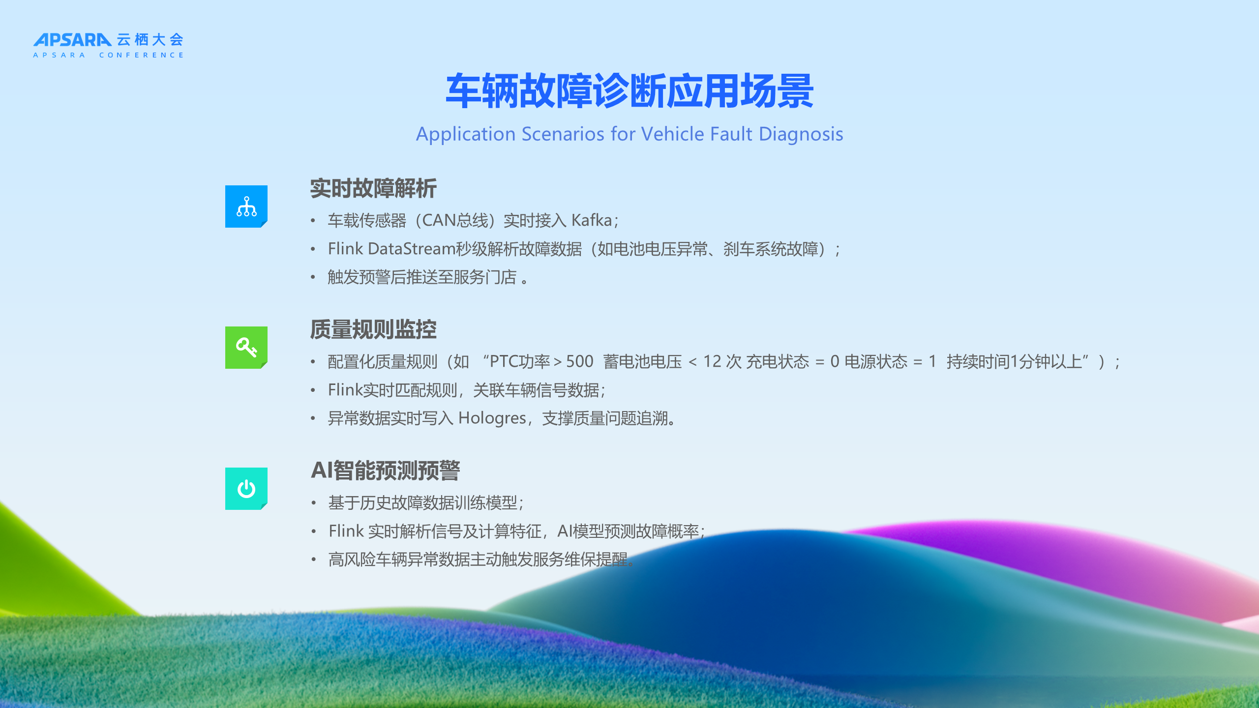 车辆故障诊断是典型的实时计算应用场景。Flink与Hologres高吞吐低延迟的性能特性,完美支撑了该场景下的三大核心任务。