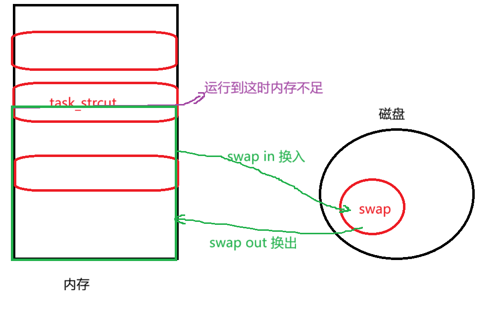 当内存足够时,储存在swap分区中的进程就是通过swap out换出到内存,而若仍然内存不足,操作系统则会选择直接删除部分进程。