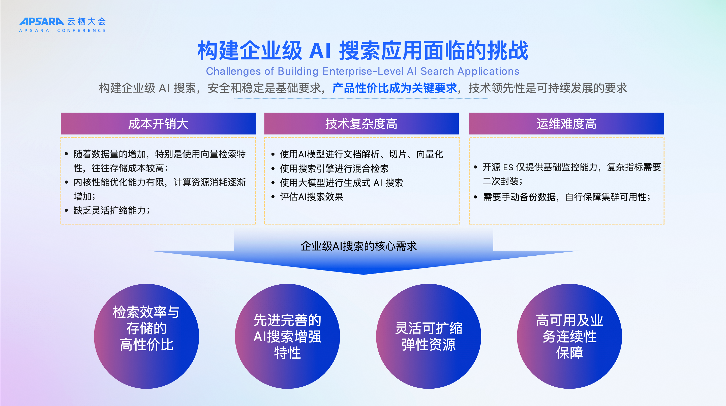 在企业级 AI 搜索的落地过程中,安全性与稳定性是基础要求,产品性价比是关键考量,而技术的领先性更是可持续发展的必要条件。但在实践中,企业往往会面临三类核心挑战: