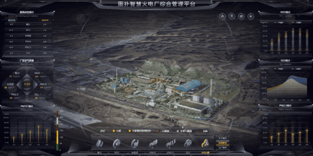 图扑智慧火电厂平台的 AQI 云图,以多色直观呈现空气污染程度,通过跨平台协议整合多系统数据,助力识别重污染区域、强化环境与人员管控,为决策和员工健康提供支撑。