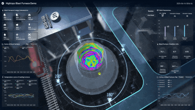 通过图扑 HT 三维可视化呈现的热力图,辅助操作人员直观掌握炉内温度场立体结构及梯度变化,依此精准调控热风参数与布料制度,通过温度分布模拟预判煤气流合理性,优化操作策略。