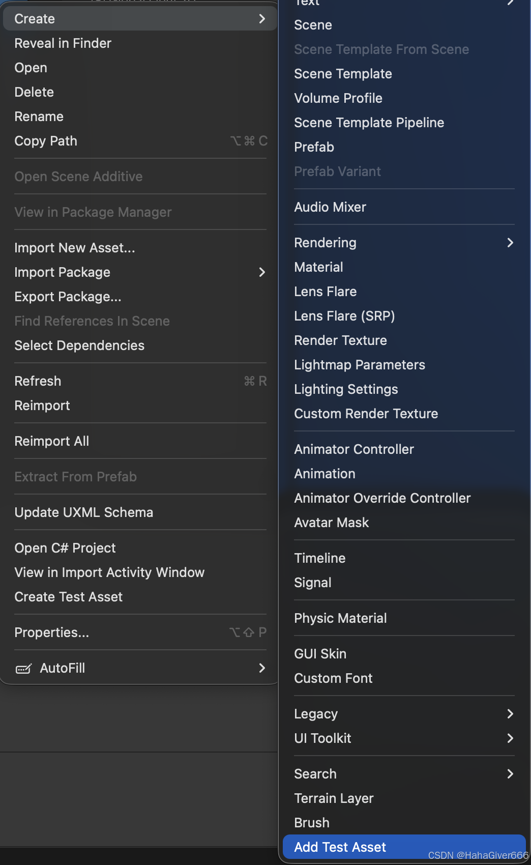通过使用Unity Editor的API(MenuItem)可以在创建Assets的菜单中添加按钮,用作创建项目中所需的文件或者资源(如ScriptableObject)。