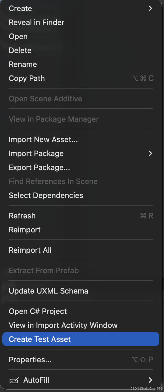 上图为选中了某一文件夹,当右键点出菜单时,可以看到Disable Test Asset按钮为可点击状态,点击后会打印代码中对应的日志。