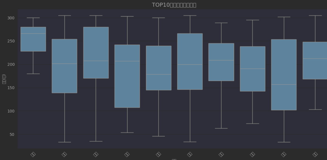 plt.title('TOP10城市房价分布对比', fontsize=14)