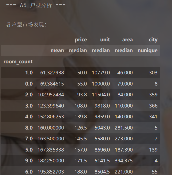 }).sort_values(('price', 'mean'))print("\n各户型市场表现:")