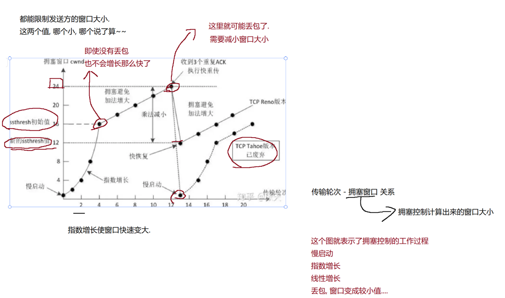 - 又丢包了,继续减小速度(因为不同时刻网络的拥堵程度 等影响因素是不同的,所以会实时变化)