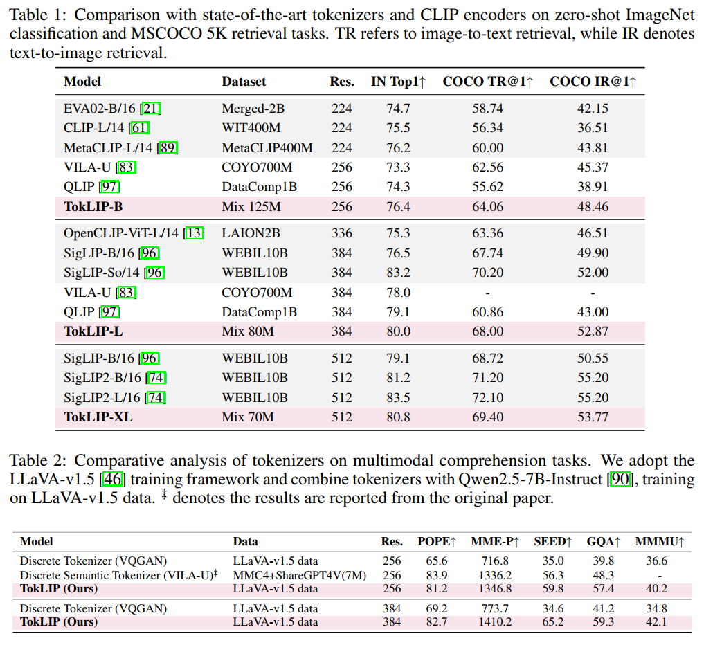 这种设计使TokLIP能够高效地利用图像-文本对数据,将CLIP级别的语义注入到离散标记中。