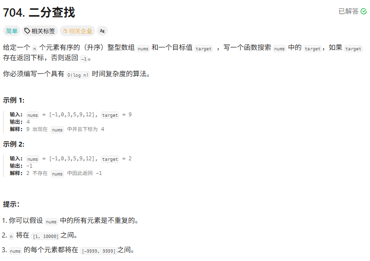 704. 二分查找 - 力扣(LeetCode)