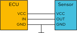 SENT (Single Edge Nibble Transmission) 协议是汽车电子中常用于传感器信号的一种数字信号接口,其有特定的协议,是单向通信,是汽车电子中一种低成本通信的实现方式。SENT协议常用于传感器信号,其基本引脚连接如下: