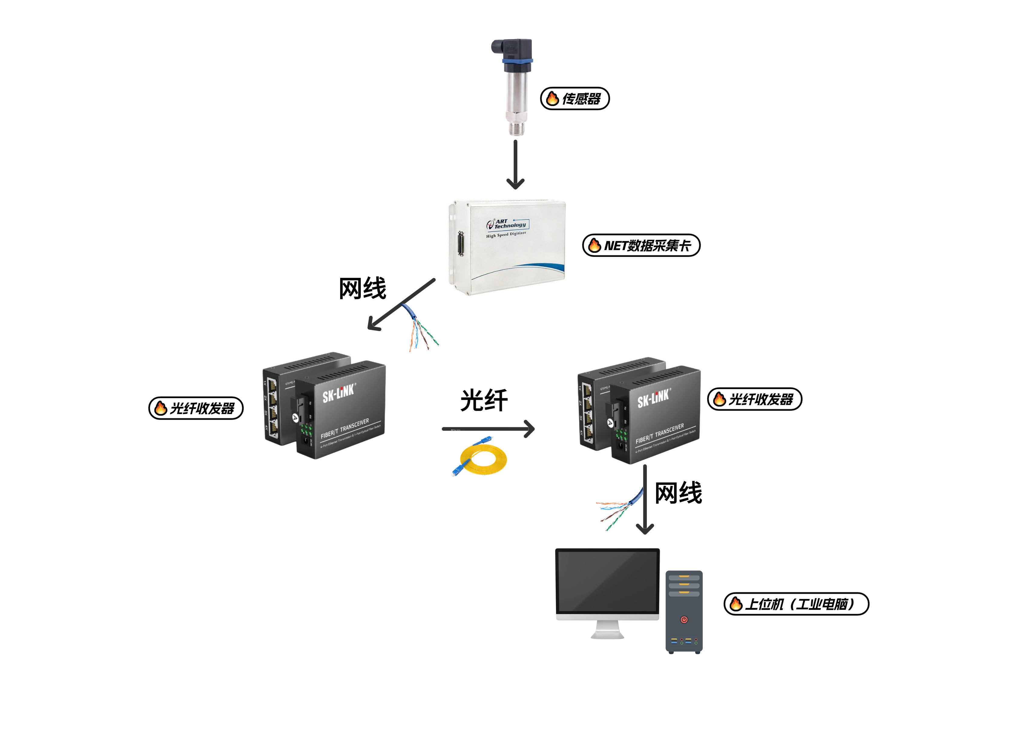 现场端收发器将采集卡输出的电信号转换为光信号。