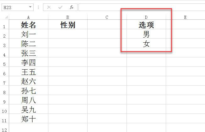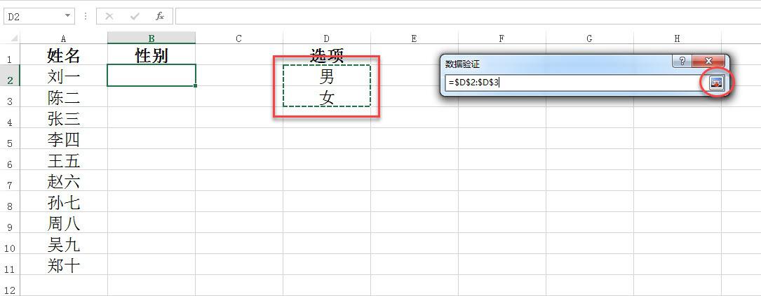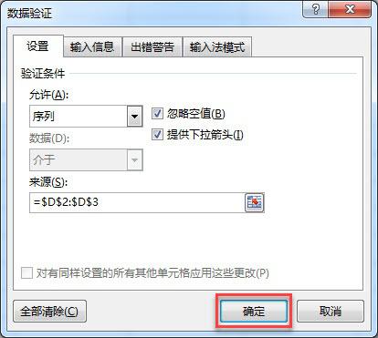 备注:1、请确保【忽略空置(B)】和【提供下拉箭头(I)】前面的方格打上对勾。2、方法二中如果修改【D2和D3】单元格中的数据,那么下拉菜单中的选项也会随之变化,因此,方法二比方法一的可变性比较强,请根据需要自行选择。