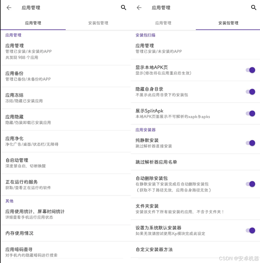 - 应用安装器root提权增强拆分多个功能分模块设置
