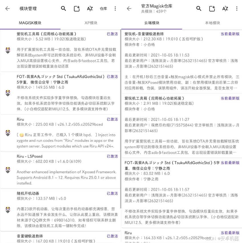 - Magisk区:模块扫描,分享?备份?核心模式?在线更新下载?