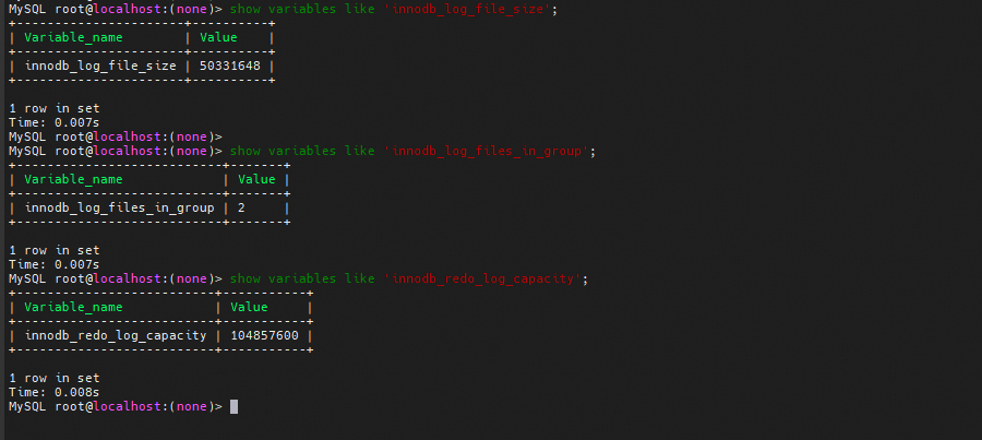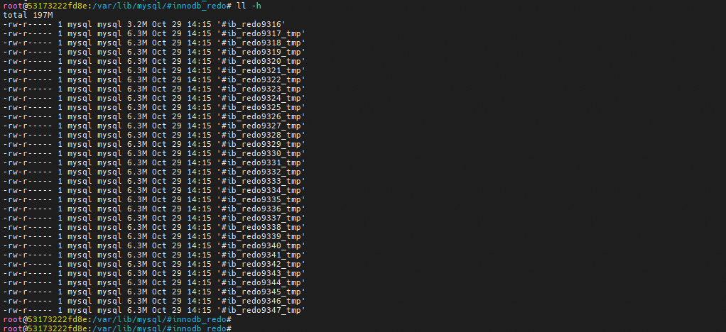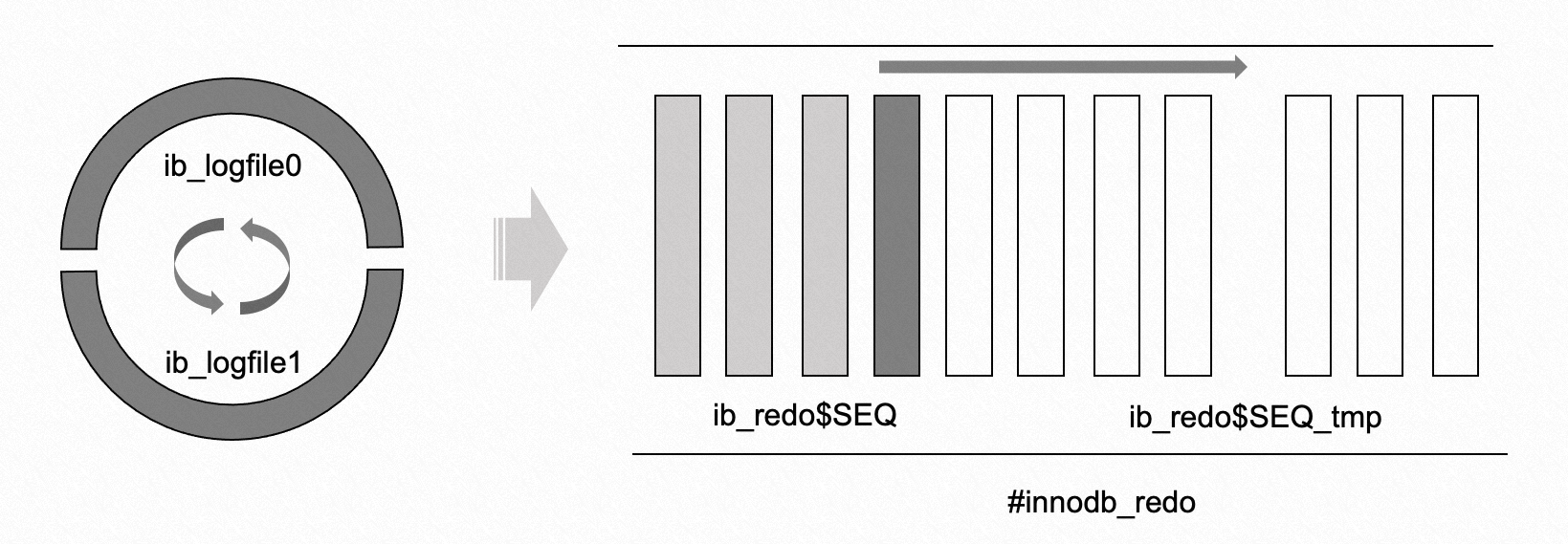 - normal redo 文件,命名为 ib_redo$SEQ,正常的 redo 文件,和以前一样,任意时刻只会有一个 redo 文件进行写入;
