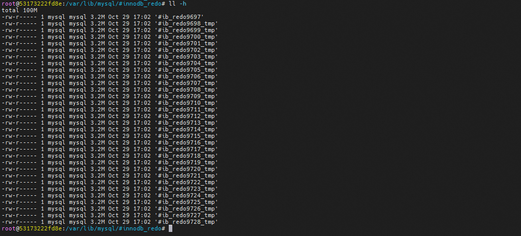 - unused redo 文件,命名为 ib_redo$SEQ_tmp,未被使用的 redo 文件在被使用时,会被重命名为正常文件;