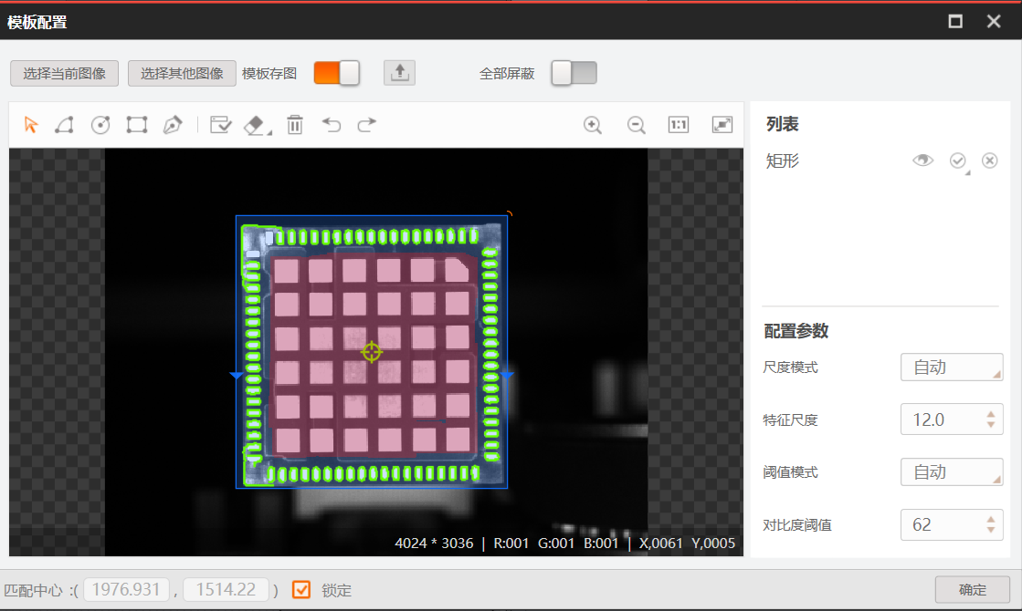 创建标定所需物体的体征模板,并确认图像的匹配中心。