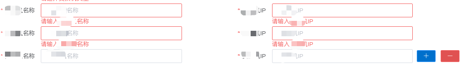 <template><el-formref="createForm":model="createForm":rules="formRules"label-width="180px"style="max-width: 800px"><!-- 动态 --><div v-for="(switchItem, index) in createForm.switches" :key="index" style="margin-bottom: 16px"><el-row :gutter="20"><el-col :span="10"><el-form-itemlabel="名称":prop="`switches.${index}.switch_name`"><el-input v-model="switchItem.switch_name" placeholder="名称" /></el-form-item></el-col><el-col :span="10"><el-form-itemlabel="IP":prop="`switches.${index}.switch_ip`"><el-input v-model="switchItem.switch_ip" placeholder="如:192.168.1.10" /></el-form-item></el-col><el-col :span="4" style="display: flex; align-items: center"><el-buttontype="primary"size="small"icon="el-icon-plus"@click="addSwitch"></el-button><el-buttonv-if="createForm.switches.length > 1"type="danger"size="small"icon="el-icon-minus"@click="removeSwitch(index)"></el-button></el-col></el-row></div><el-form-item><el-button type="primary" @click="add"> 添加</el-button><el-button type="success" @click="submitForm">提交</el-button></el-form-item></el-form>