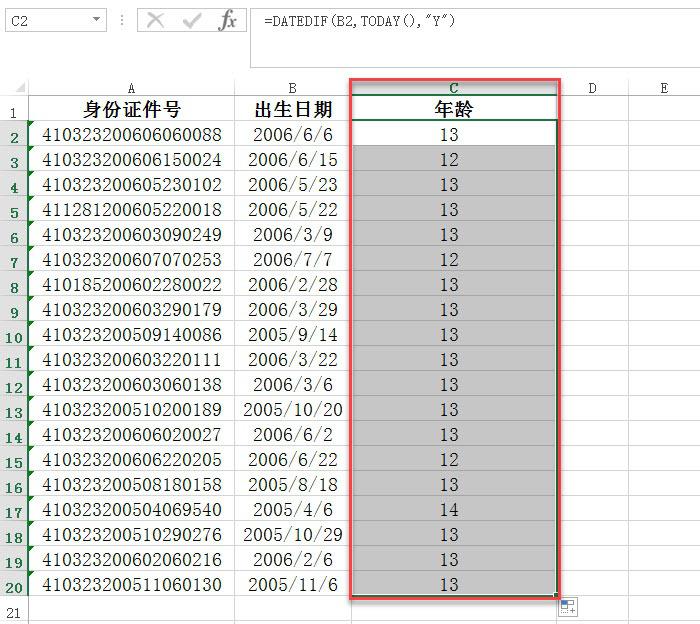第七步:参考【第三步】进行公示填充,完成年龄计算。