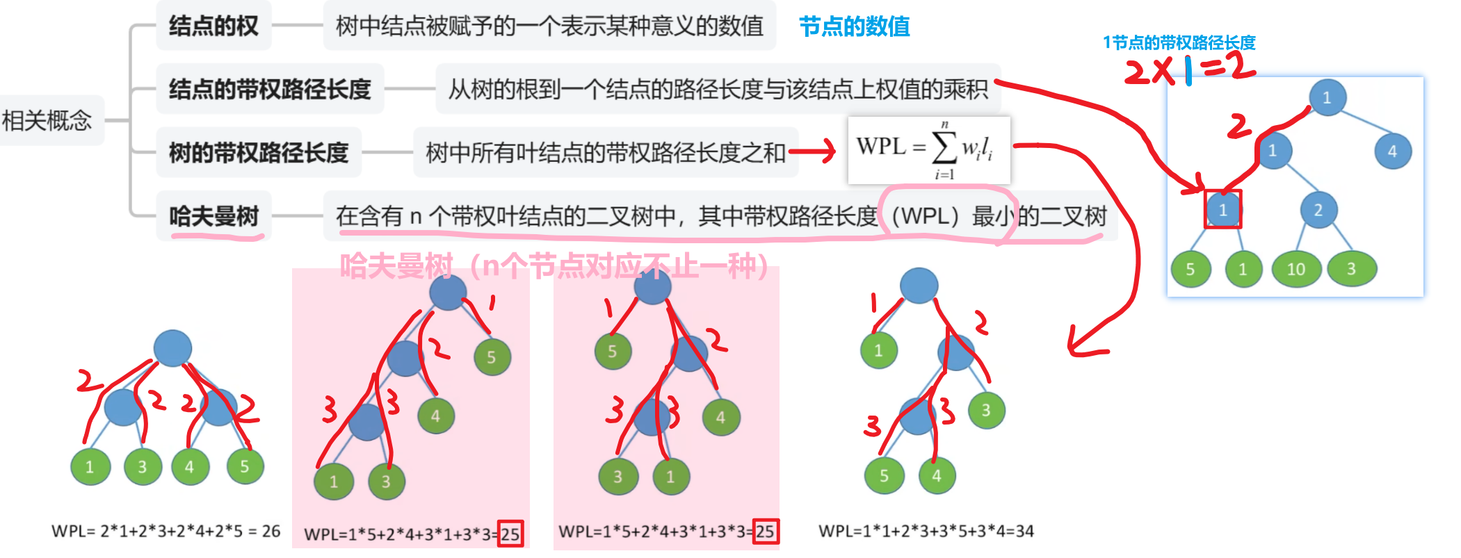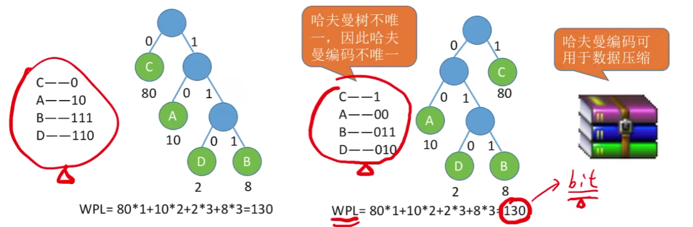 注意:哈夫曼树形状不唯一,但是【WPL带权路径长度】唯一!!!