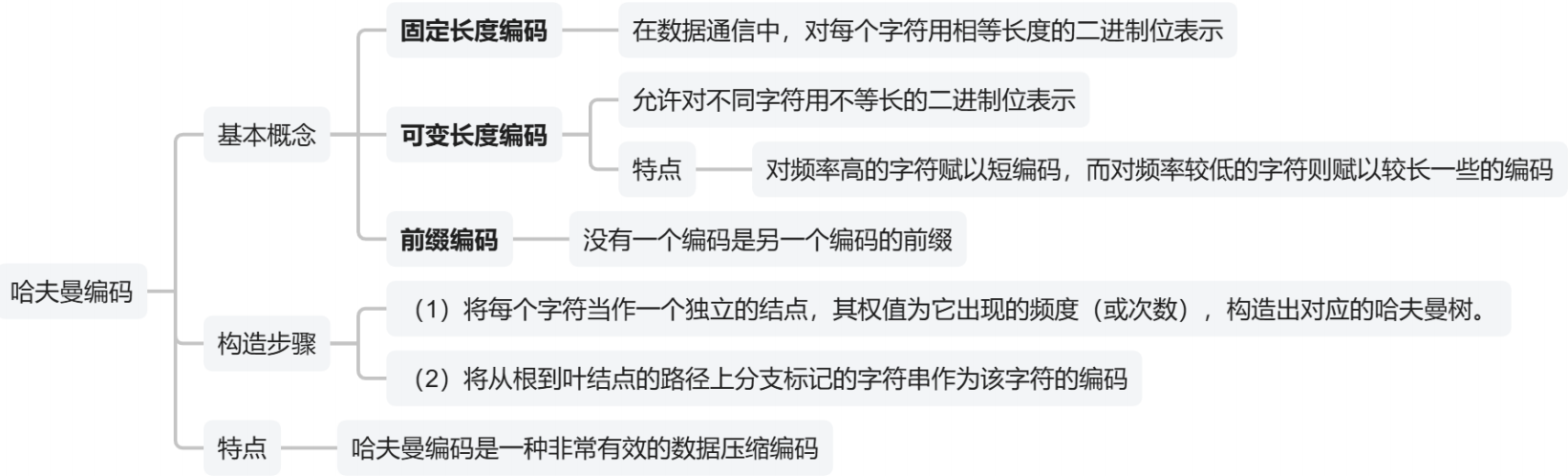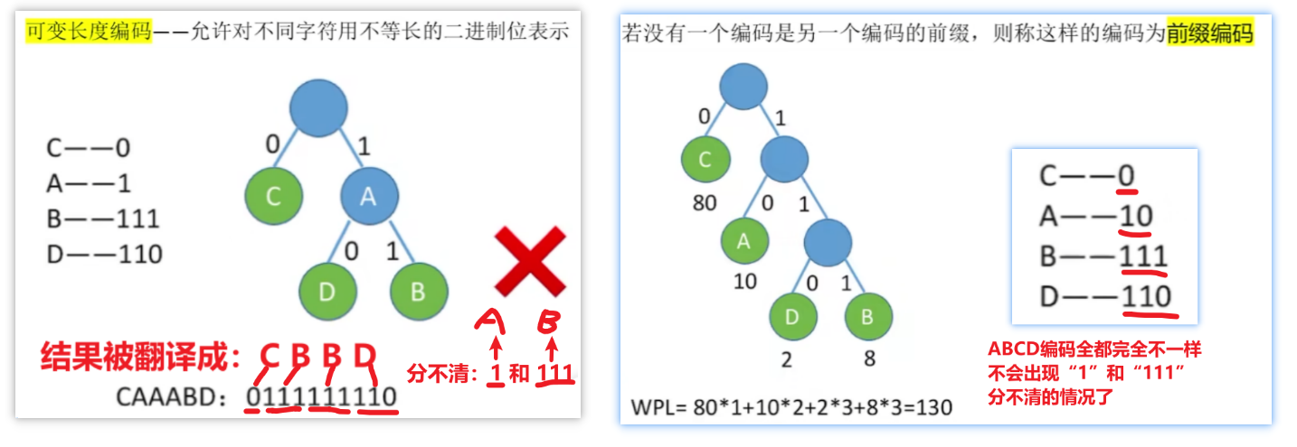 - 【前缀编码】:解决上面的问题,要求没有1个【字符编码】等于【另一字符编码的前缀】表示